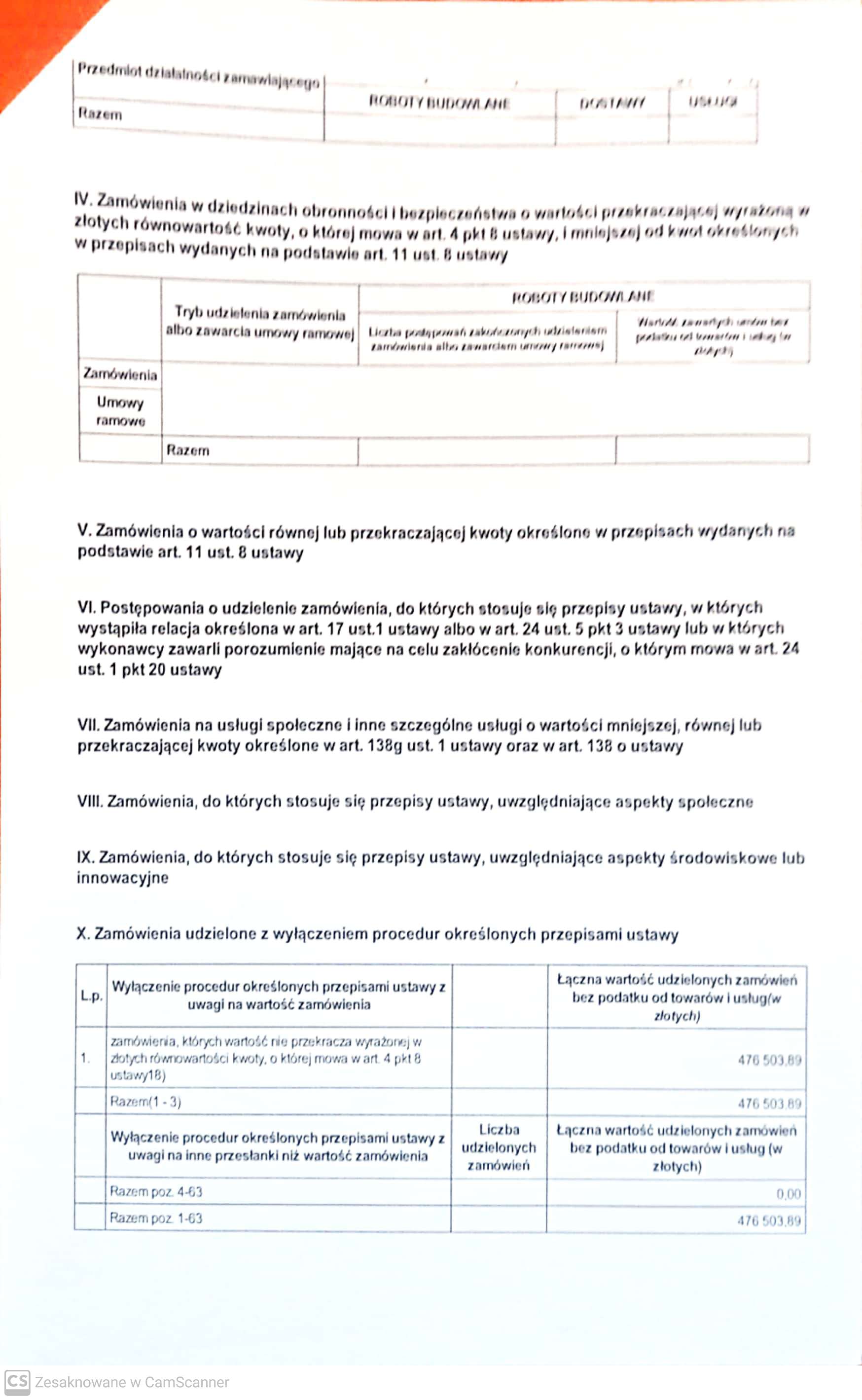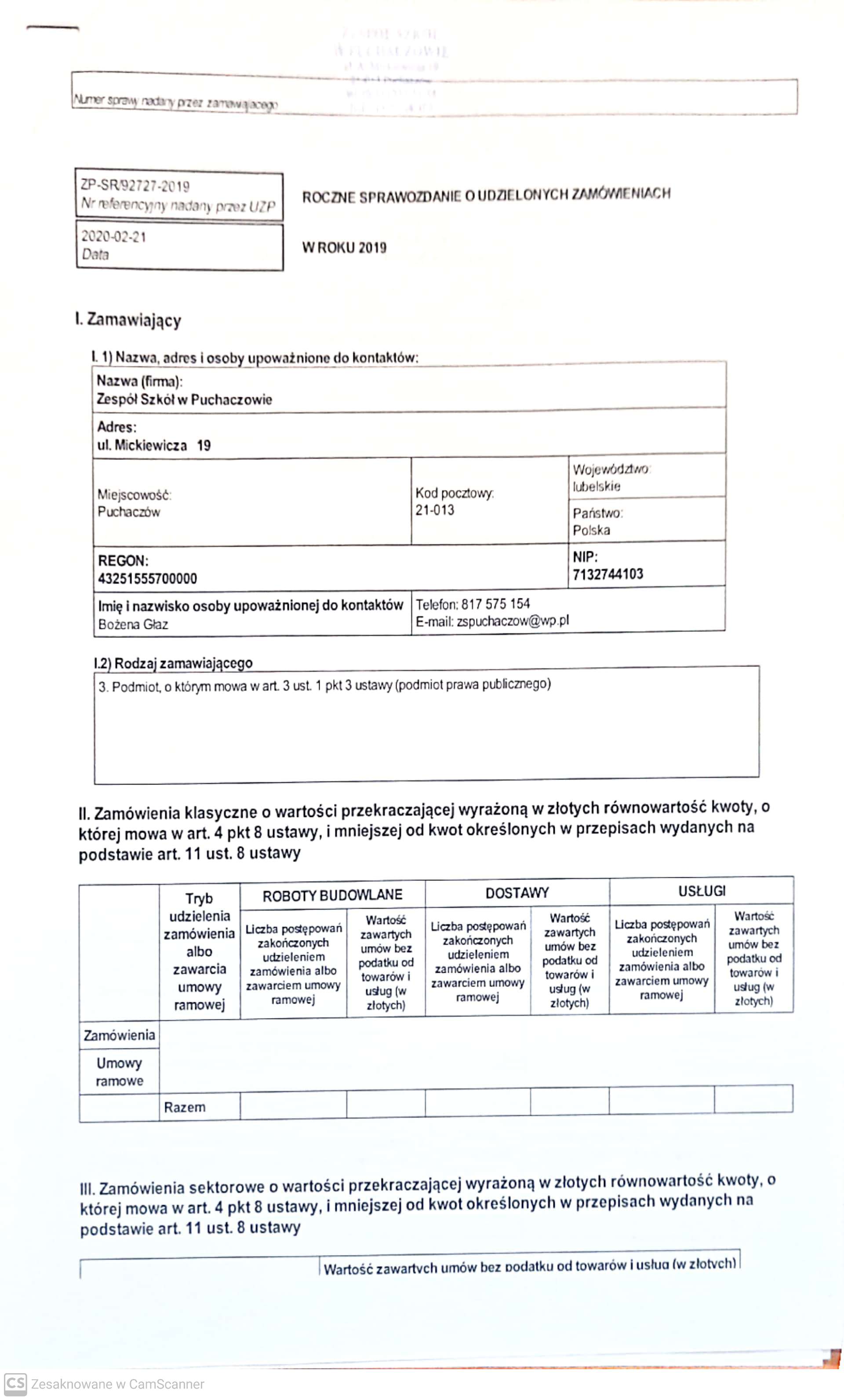 Roczne sprawozdanie o udzielonych zamówieniach 2019